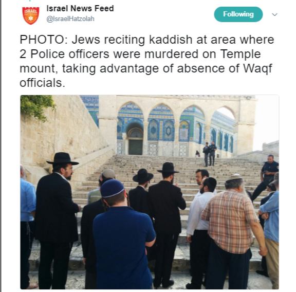 Alors que les gardiens du Waqf restent éloignés, les Juifs disent le Kaddish sur le Mont du Temple pour les deux policiers Druzes assassinés