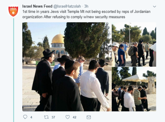 Pour la première fois depuis des années, les juifs sont montés sur le Mont du Temple lundi sans l’accompagnement des agents de l’autorité religieuse musulmane, car la police a permis aux visiteurs non-musulmans de revenir sur le site sacré pour la première fois depuis une attaque terroriste, ce vendredi dans la vieille ville de Jérusalem.