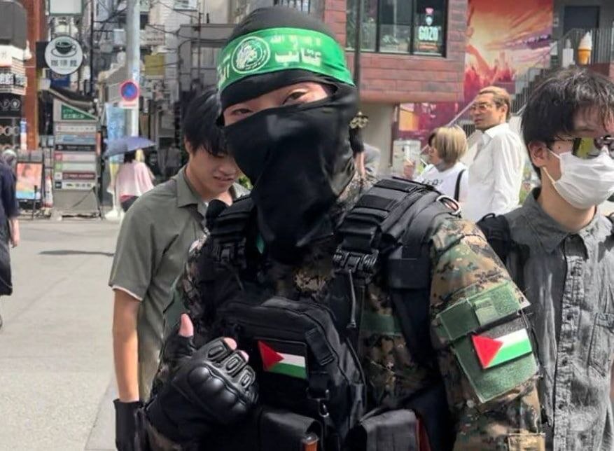 « תראו את זה- מעריץ של חמאס ביפן… תומכי טרור ברחבי העולם מסתובבים לאור יום בלבוש של רוצחים ואנסים. העולם השתגע! »
