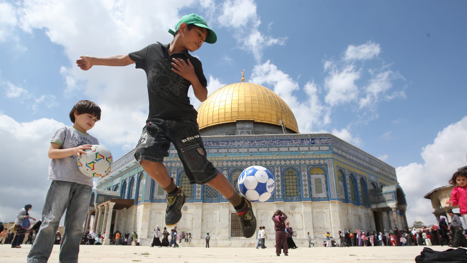 Mais les Palestiniens y jouent au football – ce qui est une insulte directe au judaïsme et une violation flagrante de la loi juive.