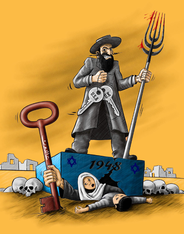 Où était le tollé palestinien à l’égard de cette caricature distribuée par l’ONG palestinienne Badil, qui utilisait une menorah juive dans son thème antisémite ?