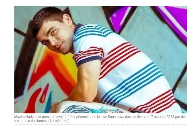 CapturĂ© le 7 octobre 2023, lors des attaques terroristes du Hamas contre le sud dâIsraĂ«l, Maxim Harkin faisait partie des premiers otages identifiĂ©s sur les vidĂ©os diffusĂ©es depuis Gaza.