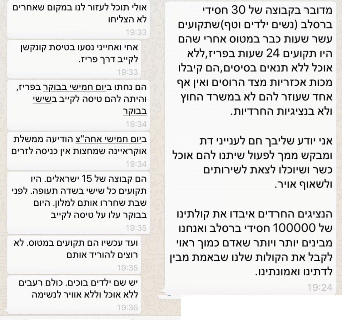 Dans le contexte de l’indignation ultra-orthodoxe contre a Roni Gamzo sur la lettre qu’il a envoyée au président de l’Ukraine empêchant les milliers d’adeptes de venir à Ouman, le journaliste Yaki Adamkar révèle ce soir des messages de soutien sincères envoyés par des partisans Breslev au député Ahmad Tibi de la liste commune pour ne pas empêcher leur voyage à Ouman, en Ukraine, le jour de Rosh Hashanah. Les messages envoyés à Tibi disaient: «Vous ne devez pas me croire s’il y a des élections maintenant, je ne choisirai que vous . « Je suis coincé à Kiev depuis 12 heures mais personne ne fait rien. »