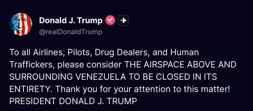Les États-Unis ont brusquement restreint l’espace aérien du Venezuela après une décision annoncée par le président Donald Trump, qui a ordonné la suspension immédiate des autorisations de survol et l’annulation de plusieurs corridors aériens. Selon les documents consultés par CNN et Bloomberg, la Maison-Blanche aurait agi en réponse à des renseignements faisant état d’une possible opération militaire ou paramilitaire impliquant des acteurs liés au régime de Nicolás Maduro.