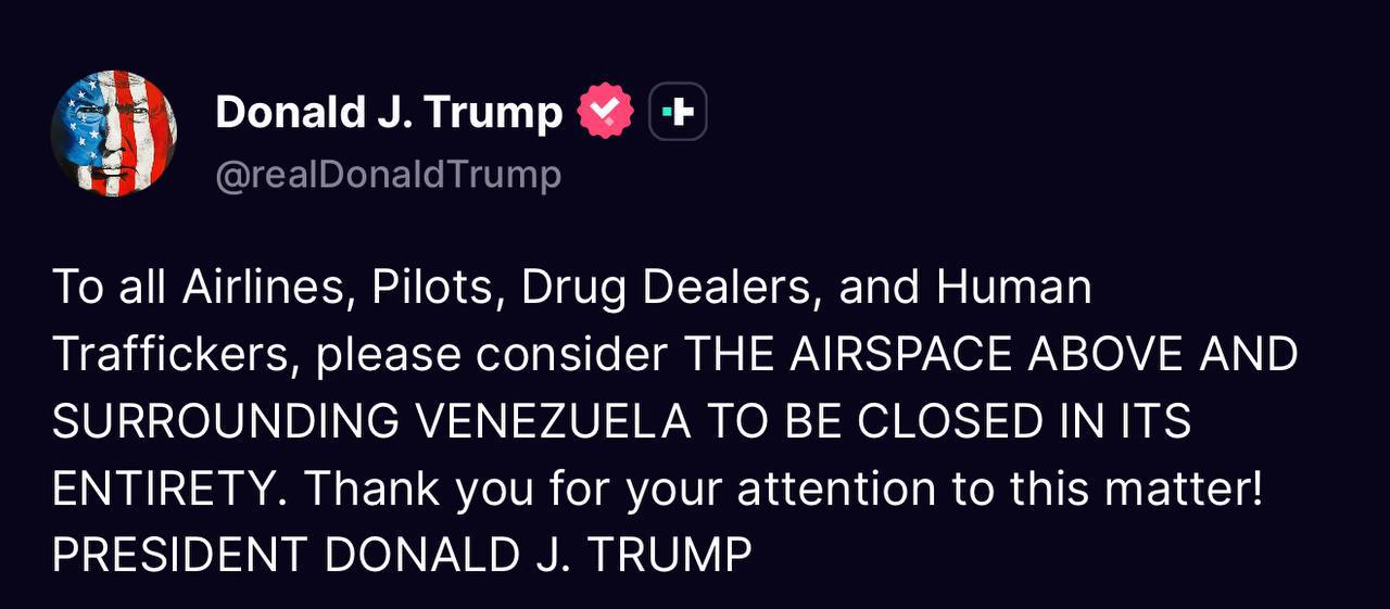 Trump impose un quasi-blocus aérien au-dessus du Venezuela